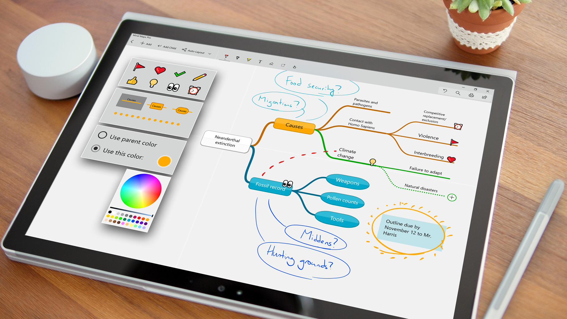 Annotate and highlight your mind map with your pen, then export it to PDF or PNG for easy sharing. Or, sync your work to OneDrive for access on all your devices.